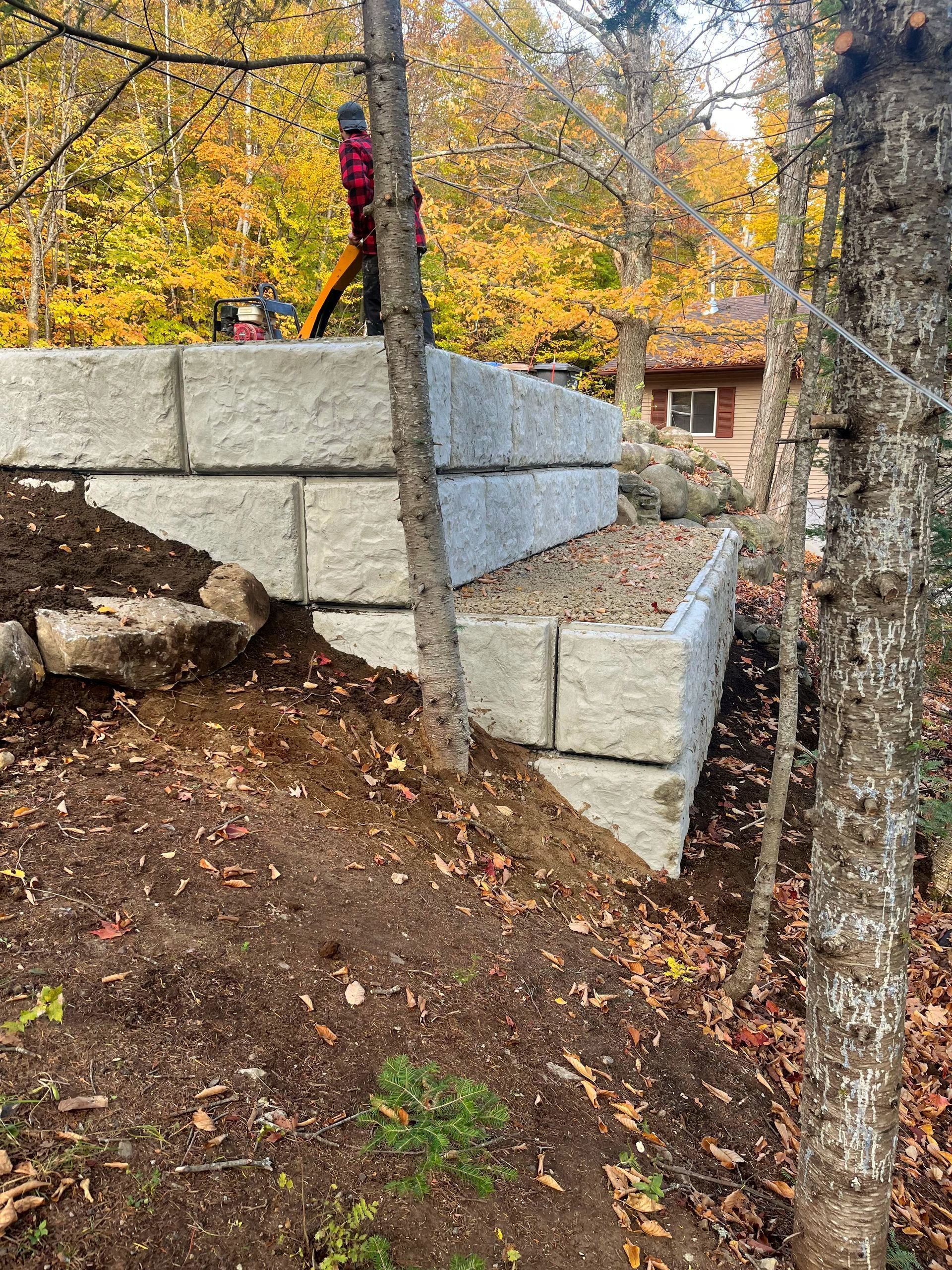 Construction de murs de soutènement durables pour prévenir l'érosion du sol et améliorer l'esthétique de votre aménagement paysager.