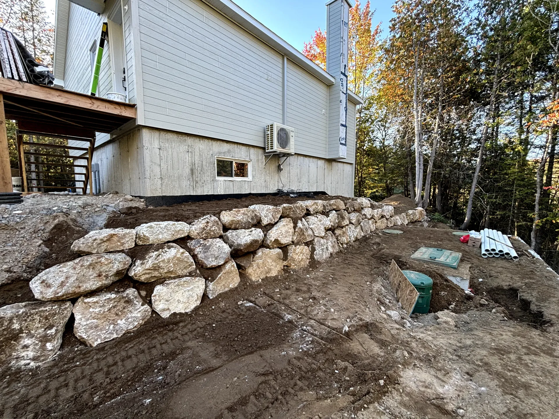 Galerie de notre projet d'excavation, mur de soutènement, et installation septique à Laurel, Québec.
